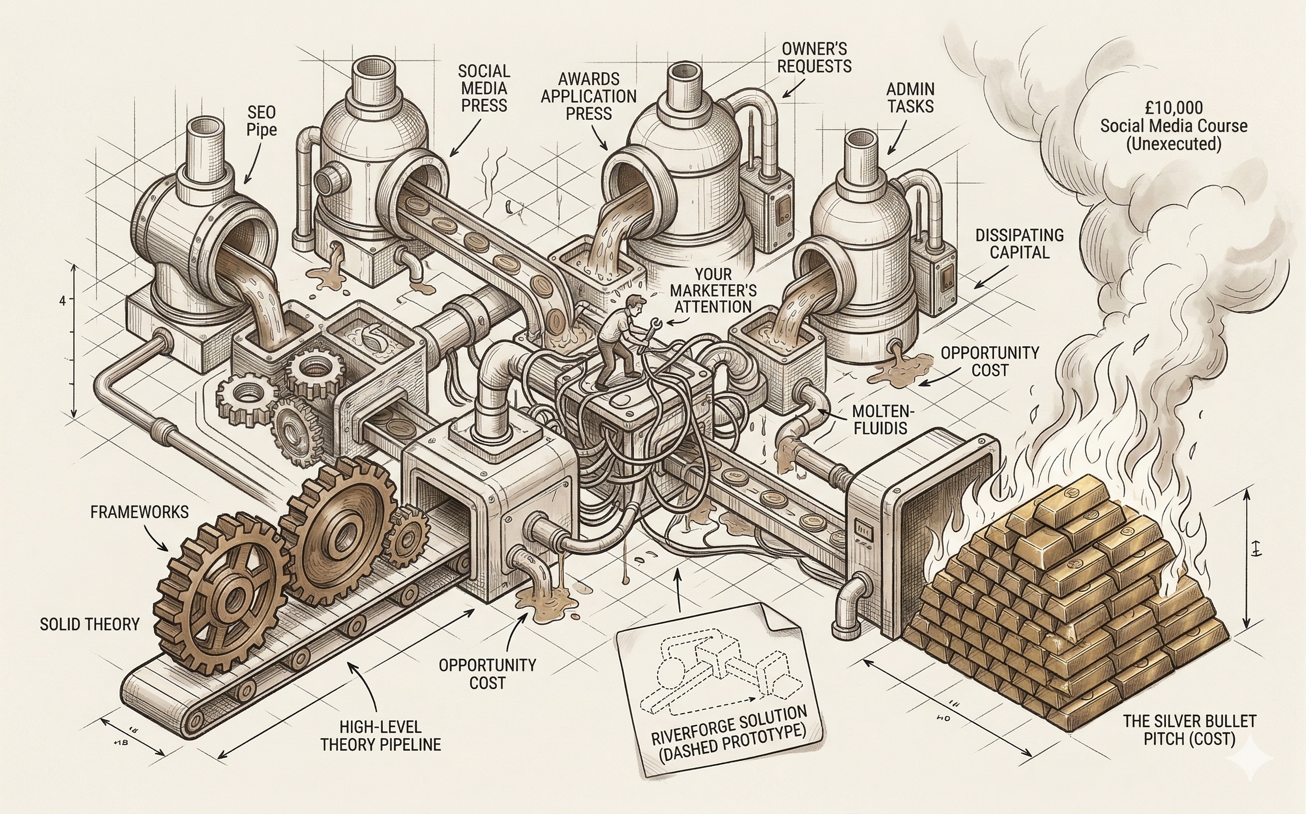That £10k social media strategy was solid. But the frameworks were built for a company with a 5-person marketing team, not you. It sits gathering dust because you lack the time and resources to execute it.
